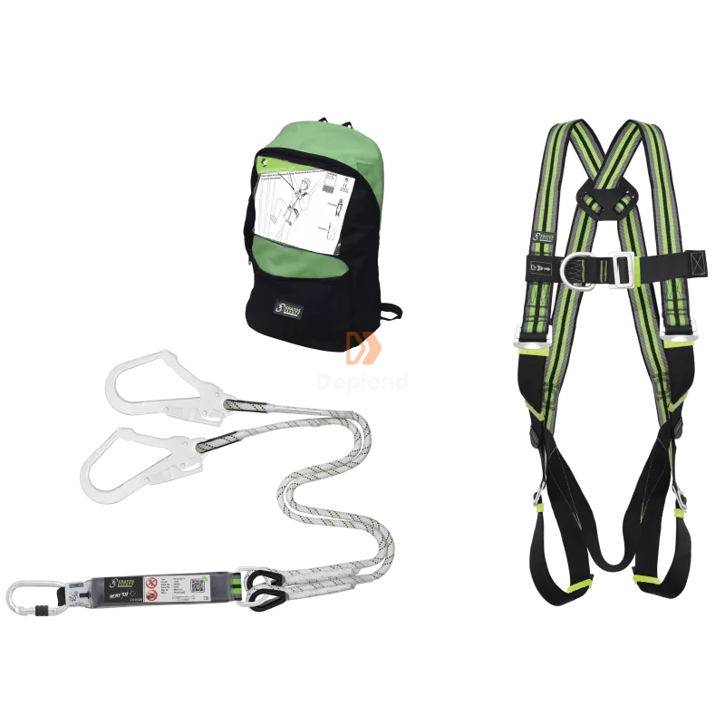 Szett vasszerkezeteken végzett munkákhoz. A szetthez hordtáska tartozik. FA 10 104 00 teljes testheveder, FA 30 600 15 kötőelem zuhanáscsillapítóval és két horoggal. Nélkülözhetetlen társ a gyakori helyzetváltoztatást sokszori ki- és bebiztosítással kísérő munkákhoz. Használat: állványon végzett munkák, munkaterület meghatározása.