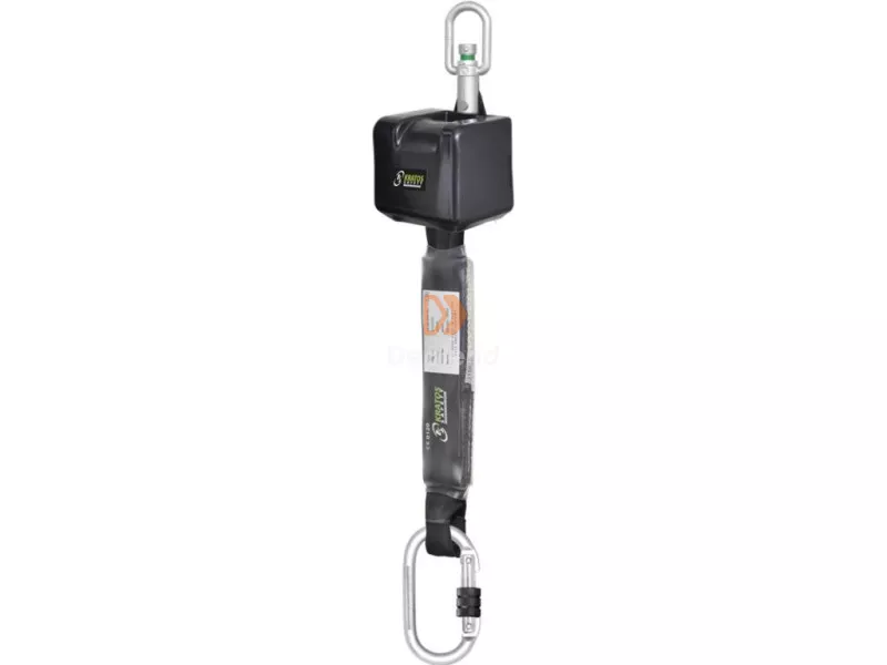 Visszahúzható zuhanásgátló acél karabinerrel, amelynek a teljes hossza 2,5 m, a lengéscsillapítója 50 mm széles, maximális mozgásszabadságot biztosít a felhasználónak és 1,2 kg a súlya. 1 karabinerrel és esésjelzős horoggal rendelkezik.