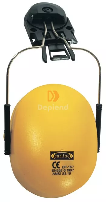 Earline állítható fémpántos sárga színű erős ABS fültok, Opus, Oceanic, Opal, GP, Peltor és egyéb védősisakokkal kompatibilis adapterrel szerelve