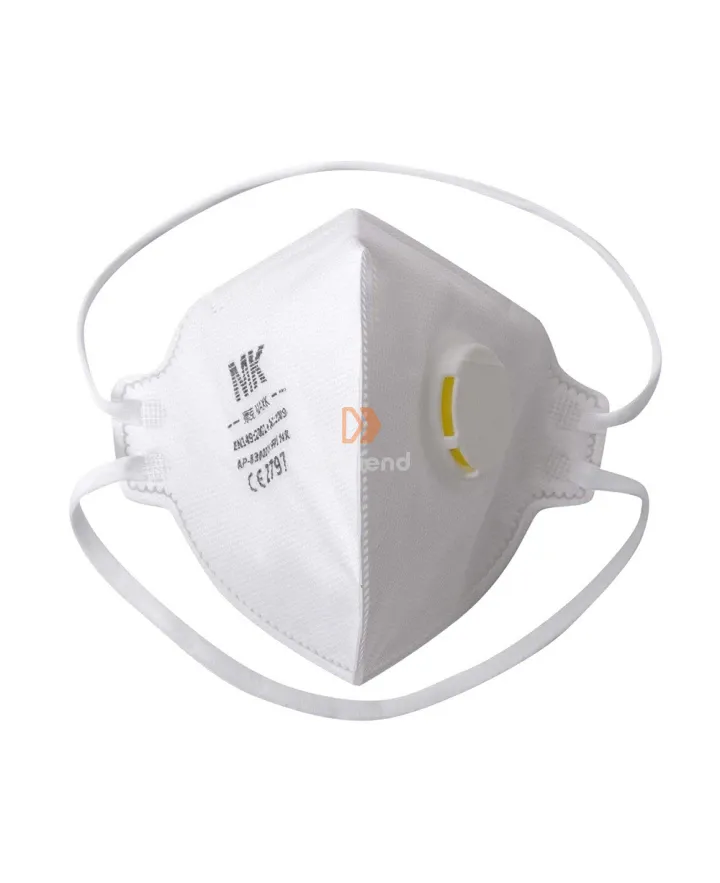 4 rétegű összehajtható FFP1 maszk, amely légzésvédő szeleppel (alacsony légzési ellenállással és magas szűrési hatékonysággal) rendelkezik és 80%-os védelmet nyújt a 0,3 mikrométer átmérőjű és annál nagyobb részecskék ellen.