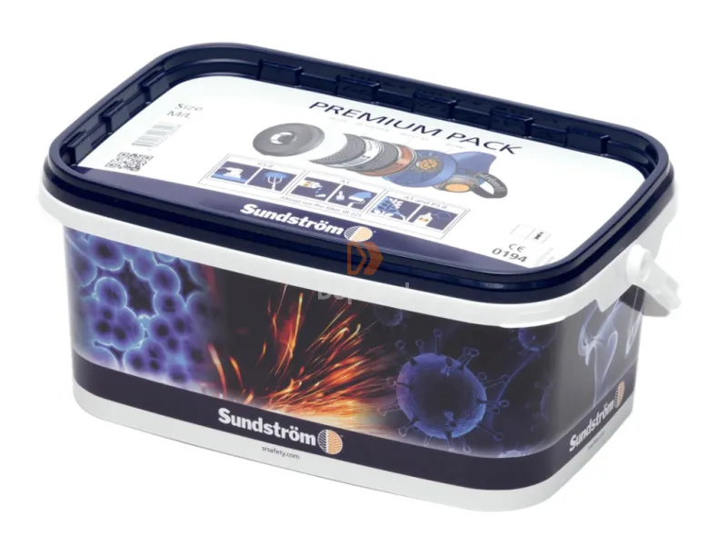 A prémium csomag tartalma: SR 100 M méret/SR 217 A1/SR 510/SR 221/előszűrő. Az SR 100 félálarc két kilégzőszeleppel van felszerelve, amelyek nagyon alacsony kilégzési ellenállást biztosítanak. A kilégzőszelepeket fedelek védik, amelyek hatékonyan védik a membránokat a festékekből származó portól, ködtől és aeroszoloktól. Könnyen állítható, rugalmas fejpántok, amelyek "V" alakban vannak kialakítva a maszk stabil és kényelmes illeszkedése érdekében a fejtetőn szűrőberendezésként használható az SR 307 sűrített levegős tartozékkal kombinálva, amely ezután légzőkészülékként szolgál a folyamatosan adagolt sűrített levegőhöz való csatlakozással. A csomag tartalma: SR 100 félálarc, SR 217 A1 szűrő/SR 510 P3 szűrő, 1 db SR 5153 előszűrő tartó, 5 db SR 221 előszűrő, 1 db tisztítókendő Védelmi szint: TM3