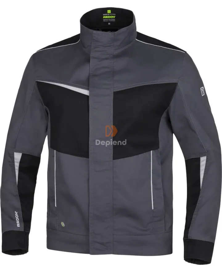 Antisztatikus dzseki, amely légáteresztő, speciális szálakkal, rejtett cipzárakkal, a mellkason 1 belső cipzáras zsebbel, 2 oldalsó cipzáras zsebbel, rugalmas szegélyű ujjakkal, anatómiailag kialakított 3D COMFORT FIT szabással és elöl és hátul fényvisszaverő csíkokkal rendelkezik.