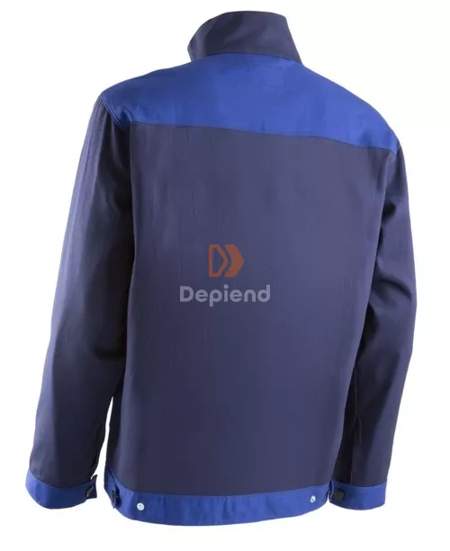 Állig érő húzózárral, szennyeződésektől védő, tépőzáras cipzárfedővel. Állítható derékkal és mandzsettával.