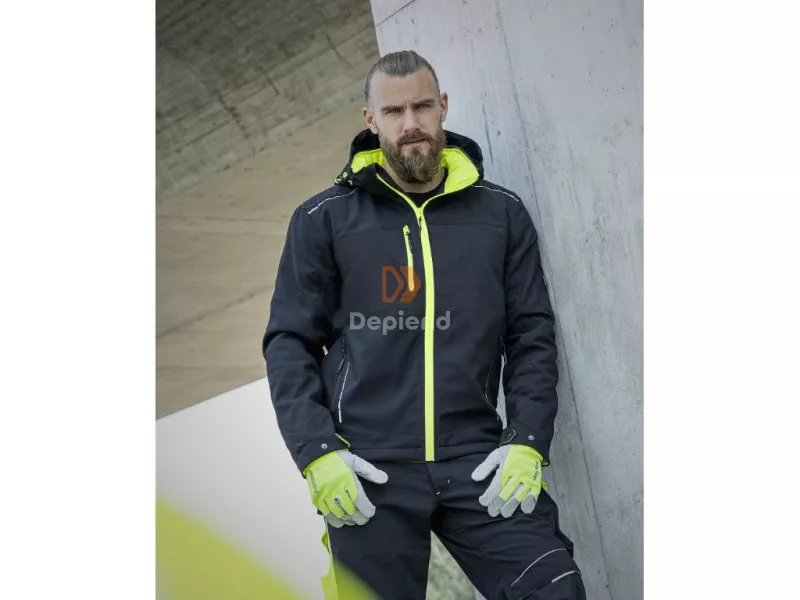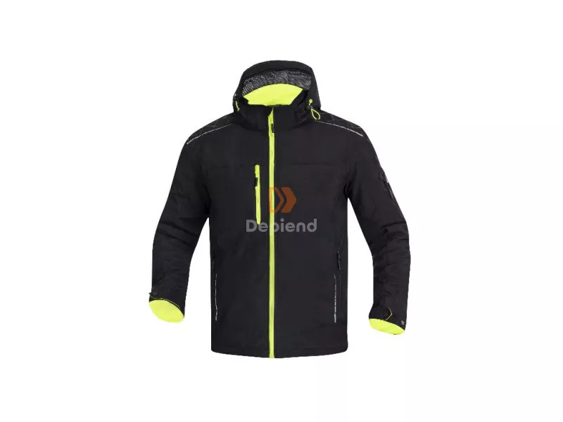 Téli softshell kabát funkcionális Elastic-Tech flexi felső réteggel, TPU membránnal. Vízállóság 5000 mm, légáteresztő képesség 5000 g/m2/24 ó. Vízálló, szélálló és légáteresztő, könnyű hajlékony és elasztikus téli szigeteléssel és béléssel. Funkcionális termopanellel a hátrészen, reverziós cipzárral, levehető szabályozható kapucnival és állítható ujj- és alsó szegély szélességgel.
