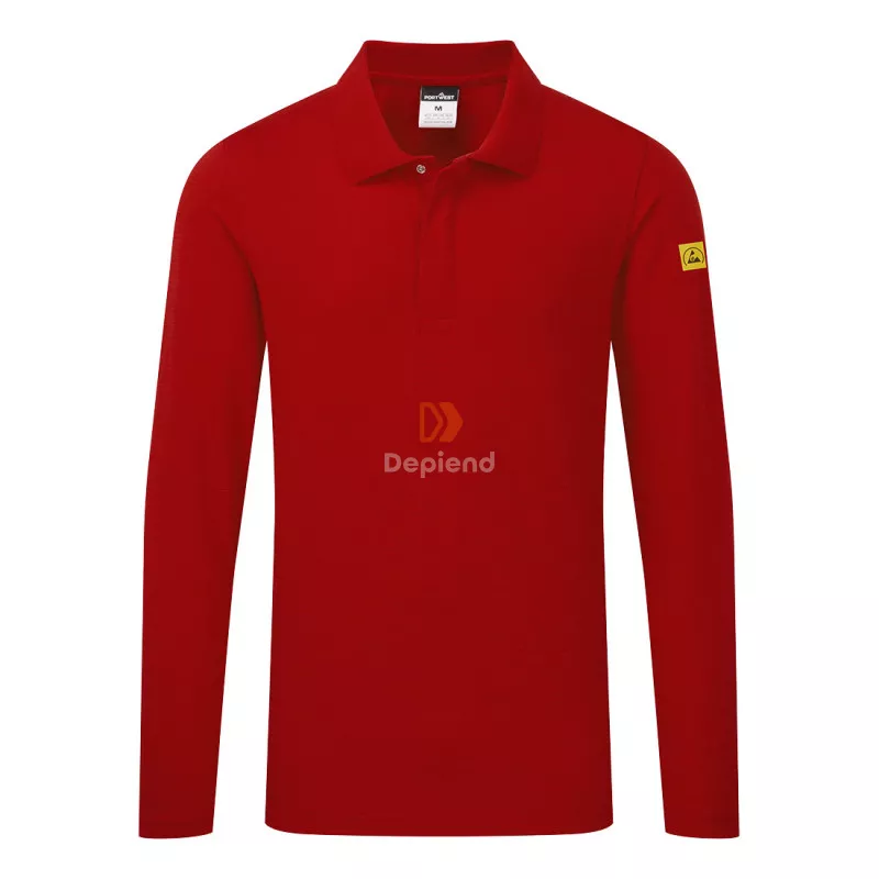ESD környezetben történő használatra alkalmas hosszú ujjú póló, amely az EN 61340-5-1 szabvány szerint tesztelt, extra komfortot nyújtó magas pamut tartalommal, bordázott gallérral, karcolásmentes kialakítással (rejtett fém alkatrészekkel), szövetbe kötött szénszálakkal (ESD és antisztatikus tulajdonságokat biztosítanak) és CE minősítéssel rendelkezik.