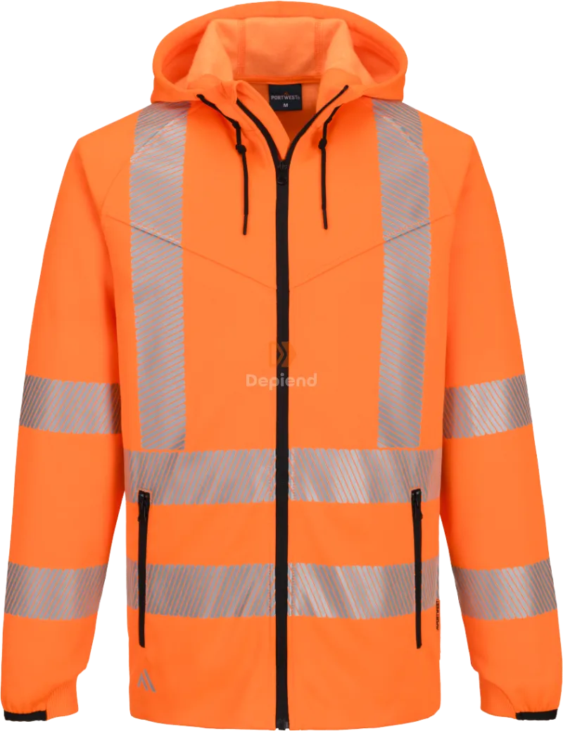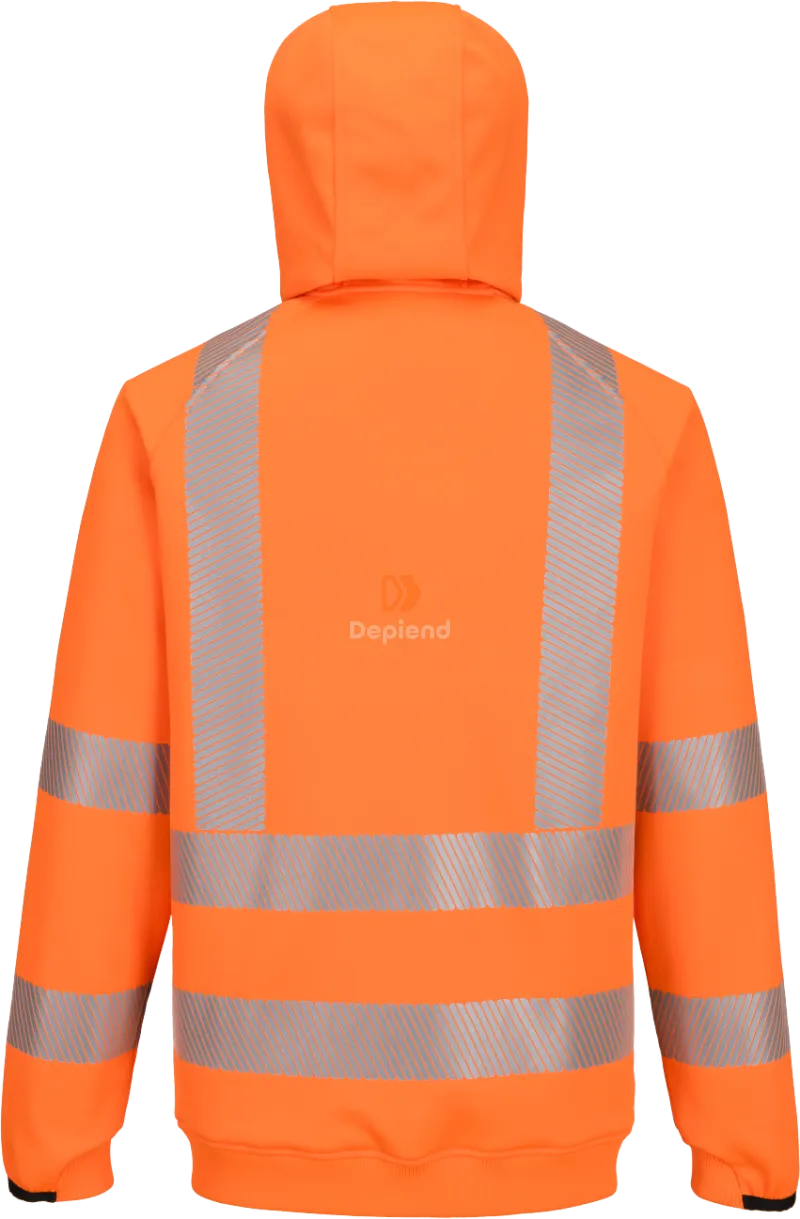 Kötött szövet szálcsiszolt hatású hátrésszel, bordázott szegéllyel, meleget és extra komfortot biztosító bordás mandzsettával, 2 cipzáras oldalzsebbel, kényelmes kialakítással, hőillesztett, szegmentált fényvisszaverő szalaggal, a biztonságos tárolás érdekében 2 zsebbel, az időjárás elleni további védelemért kapucnival, 40+ UPF minősítésű alapanyaggal (az UV-sugarak 98%-át blokkolja), az EN ISO 20471 szabvány szerint 50 mosásra minősítéssel és CE minősítéssel rendelkező jól láthatósági pulóver, amely megfelel a RIS 3279-TOM vasúti szabványnak (csak a narancs szín!).