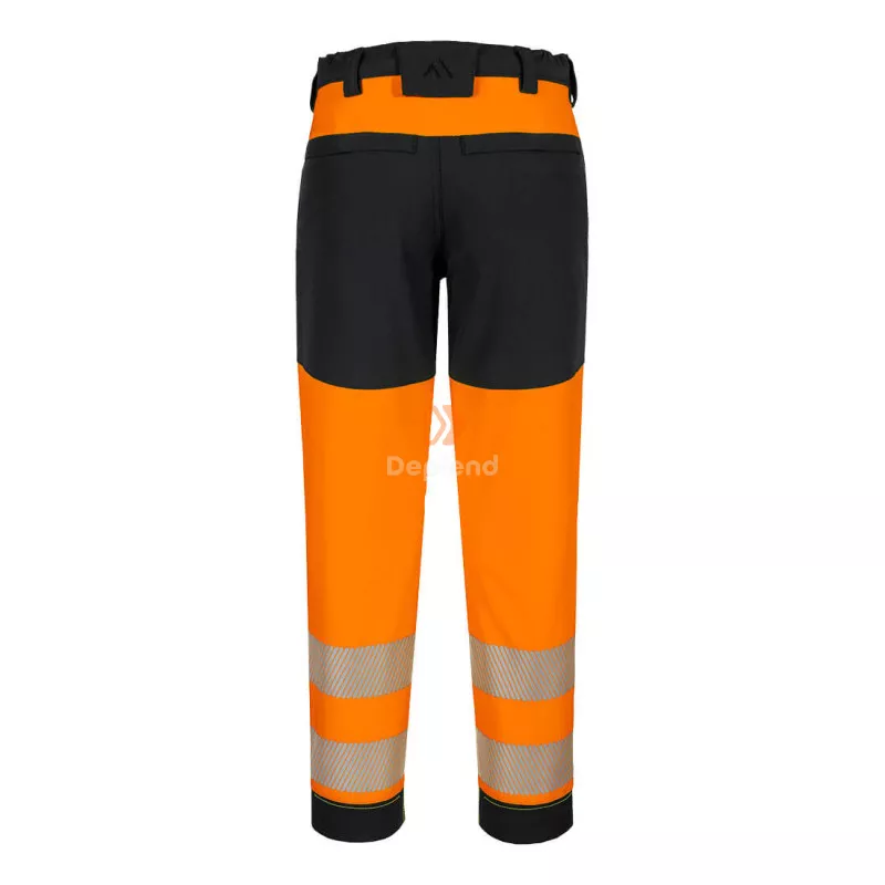 PW3 jól láthatósági könnyű, stretch nadrág. Kiváló, 4 irányban nyúló sztreccs alapanyag a munka közbeni maximális mozgásszabadság érdekében. Rugalmas HiVisTex Pro szegmentált fényvisszaverő szalag, átlós cipzáras zseb, megerősített térd, kontrasztos ülőlap és részben elasztikus derékpánt. Jellemzők: Rendkívül vízálló, PFAS-mentes Texpel Splash Eco szövetkikészítés, a víz lepereg a szövet felületéről. 4 irányban nyúló anyag a nagyobb mozgásszabadság és a kényelem érdekében. Stretch ágyék erősítés a kopás megelőzésére. Két rétegű megerősített térd rész az extra erősségért és tartósságért. Állítható szegély - normál és hosszú szár között. Oldalzsebek. Praktikus cipzáras oldalsó zsebek. Két hátsó zseb füllel és gomb záródással. Egyedi innovatív zsebkialakítás. Kontraszt panelek a szennyeződések ellen. Oldalt gumírozott derék az egyedülálló kényelemért. Hőillesztett, szegmentált fényvisszaverő szalag hozzáadott jól láthatóságért. 6 sokoldalú, praktikus tárolózsebbel. EN ISO 20471 szabvány szerint 25 mosásra minősítve. CE minősítés. Regisztrált európai közösségi design.