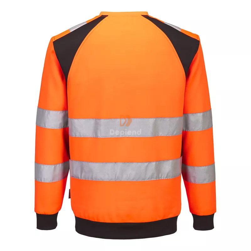 Kötött szövet szálcsiszolt hatású hátrésszel, környezettudatos, tanúsítottan újrahasznosított anyaggal, meleget és extra komfortot biztosító bordás mandzsettával, a kényelmes illeszkedésért bordázott szegéllyel, környakkal, a fokozott láthatóságért fényvisszaverő szalaggal, 40 UPF minősítésű alapanyaggal (az UV-sugarak 98%-át blokkolja), az EN ISO 20471 szabvány szerint 50 mosásra minősítéssel, maximális kényelmet biztosító, teljesen gumírozott derékkal és CE minősítéssel rendelkező jól láthatósági pulóver.