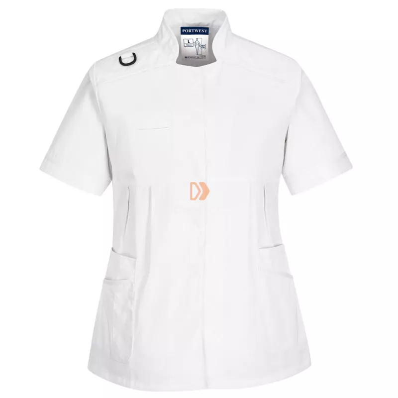 A könnyű mozgásért és a kényelemért 2-irányú twill stretch alapanyaggal, a könnyű hozzáférésért rejtett patentos elülső résszel, 4 sokoldalú, praktikus tárolózsebbel, rejtett olló zsebbel, kulcsoknak vagy azonosító kártyának D gyűrűvel és az extra mozgásszabadságért Action hátrésszel rendelkező tunika, amely gépben mosható (60°C).