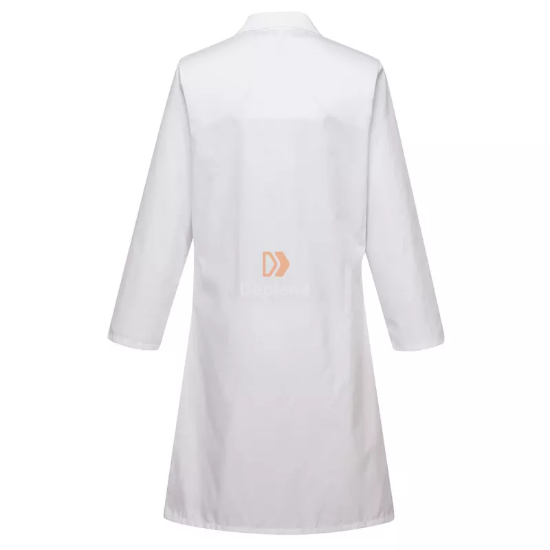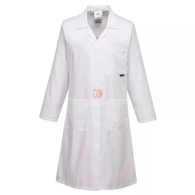 Tartós poliészter/pamut szövettel, a könnyű hozzáférésért rejtett patentos elülső résszel, 3 sokoldalú, praktikus tárolózsebbel és két kisebb zsebbel rendelkező női köpeny, amely gépben mosható (60°C).