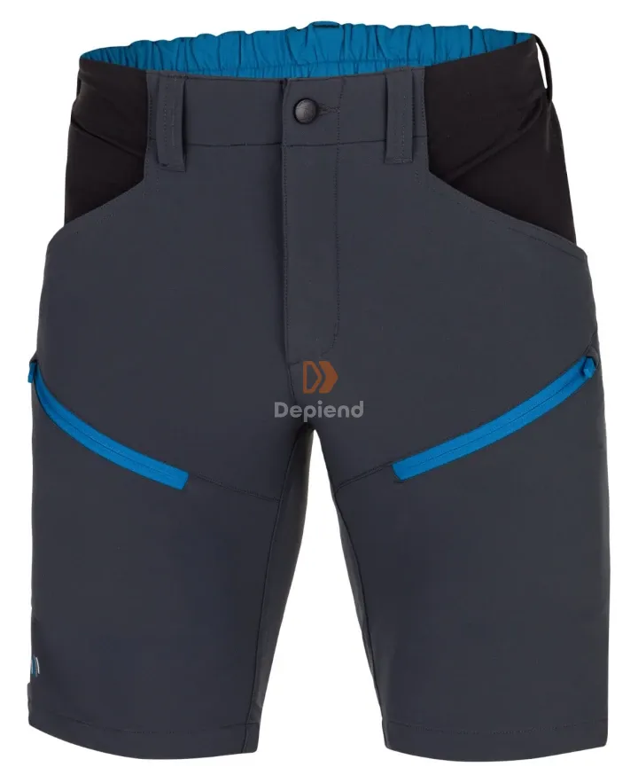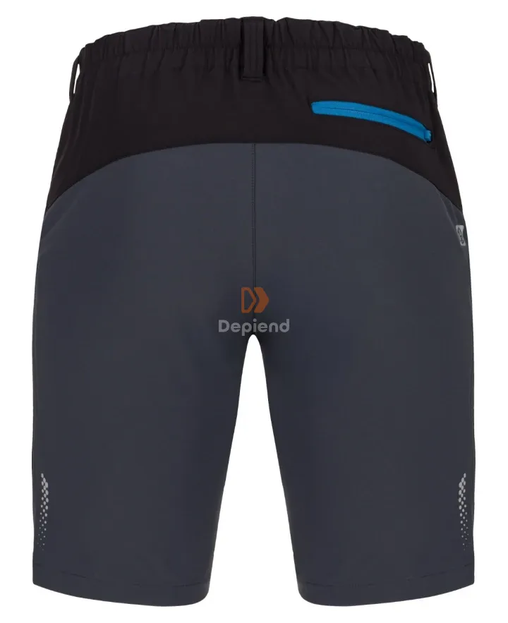 Férfi softshell rövidnadrág, amely vízlepergető és lélegző, karcsúsított SLIM FIT szabással, speciális belső réteggel, elöl 2 cipzáras zsebbel, hátul 1 cipzáras zsebbel, rugalmas derékkal, szellőzőcipzárokkal és fényvisszaverő 3D-s nyomatokkal rendelkezik.