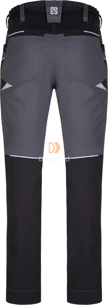 Ideális gyártóüzemi és kültéri használatra. Légáteresztő, tartós Refiwan Fibre anyagból (58% pamut, 40% poliészter, 2% pzénszál, 220 g/m²), ipari mosásra tervezve, fémmentes kialakítással. Anatómiailag formázott 3D COMFORT FIT szabás, előformázott, dupla anyagú térdrésszel és fényvisszaverő csíkokkal a jobb láthatóságért. Praktikus zsebek: 2 elülső, 2 hátsó, 2 lábszárzseb + ID kártya kompatibilitás. Rugalmas derékrész rejtett gombbal, könnyen hosszabbítható szár (+5 cm).