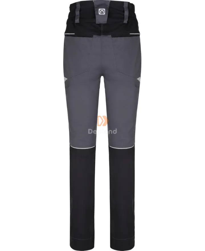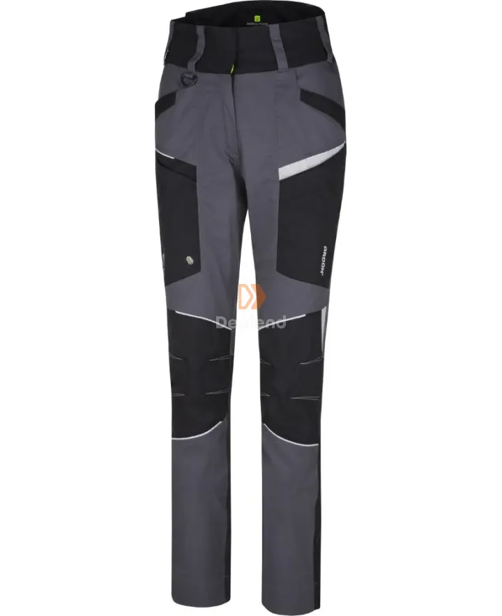 Antisztatikus női derekas nadrág, amely légáteresztő, 5 cm-el hosszabítható, speciális szálakkal, rejtett cipzárakkal, 2 oldalsó zsebbel, 2 elülső zsebbel, 2 hátsó zsebbel, anatómiai alakú 3D COMFORT FIT előre formázott térdekkel, dupla anyagból készült térdrésszel és elöl és hátul fényvisszaverő csíkokkal rendelkezik.