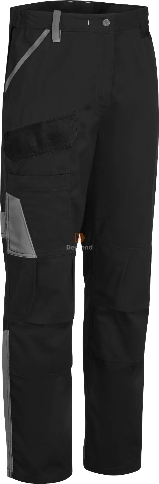 100% pamut alapanyagból készült nadrág, amely félig gumírozott derékkialakítással, fényvisszaverő csíkozással, kontraszt színnel, alulról betölthető térdpárna zsebekkel, hátsó zsebbel, 5 sokoldalú, praktikus tárolózsebbel és 2 oldalsó zsebbel rendelkezik.