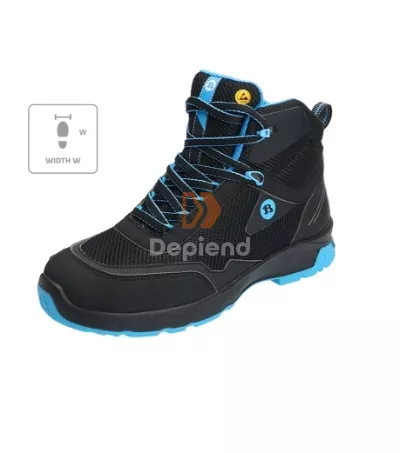Odor control antibakteriális rendszerrel, alumínium lábujjvédővel, kompozit talpbetéttel (talpátszúrás elleni védelemmel és Flex Guard-al), Premium Fit / POLIYOU talpbetéttel, csúszásgátló PU/TPU talppal, üzemanyagnak ellenálló talprésszel, vízálló felsőrésszel, energiaelnyelő sarokrésszel, ESD védelemmel és hálós béléssel rendelkező antisztatikus munkavédelmi bakancs.