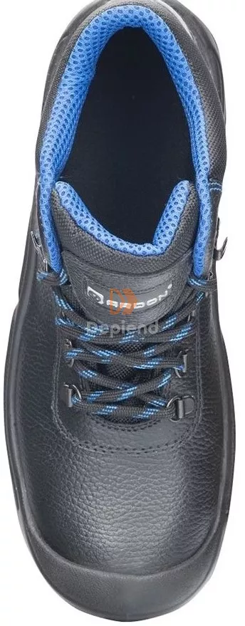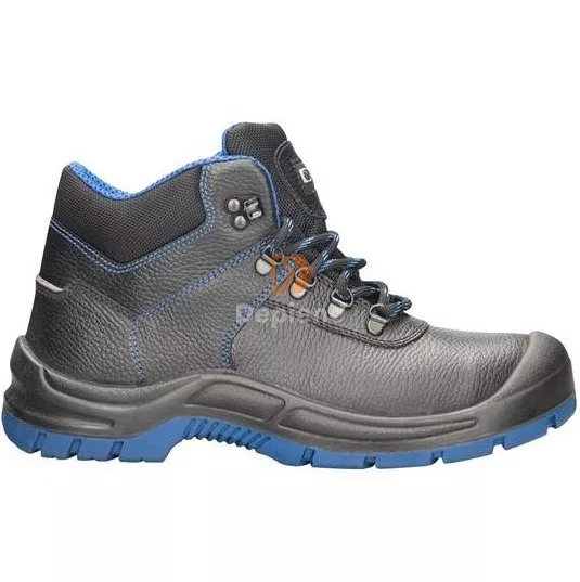 Biztonsági bakancs bőr felső résszel, hidrofób felülettel és szövettel. A biztonságról acél orrvédő és acél talpbetét gondoskodik.