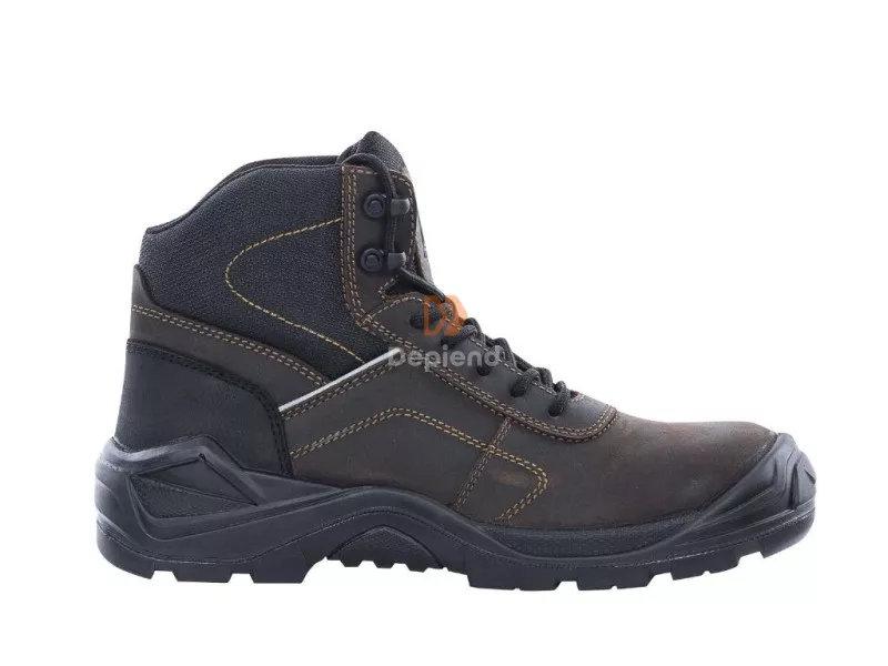 Hidrofób (víztaszító) kezeléssel ellátott nubuk marhabőr felsőrész. A talpátszúrás elleni védelmet hajlékony kevlár biztosítja. A jobb láthatóság érdekében a bakancs fényvisszaverő csíkkal van ellátva.