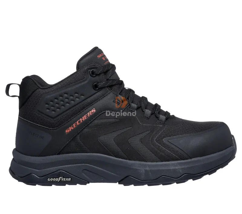 Karbon Nano nemfémes kaplival, elektromos veszély elleni védelemmel, csúszásgátló talppal, Skechers Air-Cooled Memory Foam talpbetéttel és Goodyear gumitalppal rendelkező munkavédelmi bakancs.