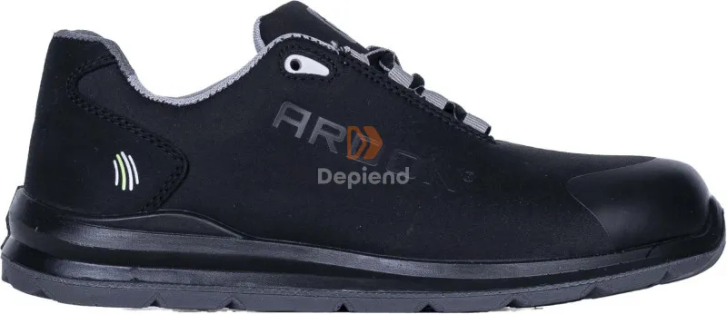 Az Ardon munkás félcipő softshell típusú textil felsőrésszel és laminált, légáteresztő MESH béléssel biztosítja a különböző időjárási körülményekkel szembeni ellenállást, hosszú élettartamot és kényelmet akár egész napos viselés során is. A kétkomponensű poliuretánból készült talp olajálló, antiszatikus és csúszásgátló, így kiváló stabilitást biztosít, elsősorban zárt térben. Az anatómiai gélbetét extra kényelmet nyújt minden lépésnél. Munkahelyre és szabadidős tevékenységekhez is alkalmas. Anyag: SOFTSHELL típusú textil. Bélés: laminált, légáteresztő MESH textil. Talpbetét: ANATOMIC GEL Talp: PU/PU olajálló, antisztatikus, csúszásmentes, kétkomponensű fröccsöntött. Súly: 440 g (egy fél pár 42-es méretű cipő esetén)