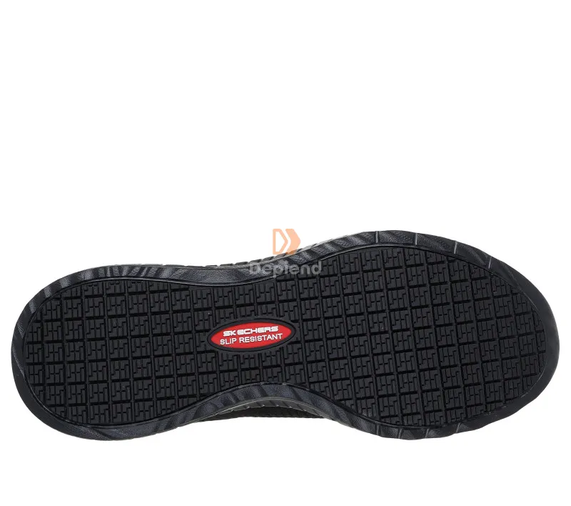 Főbb jellemzők: Elektromos veszély (EH) biztonságos kialakítás ASTM-F2892 szabvány szerint tesztelve. Csúszásgátló (SRO) minősítésű külső talp a nedves, száraz, olajos és zsíros felületeken való tapadásért. Vízálló konstrukció a SATRA TM-77 szabvány szerint tesztelve. Skechers Air-Cooled Memory Foam párnázott, kényelmes talpbetét.