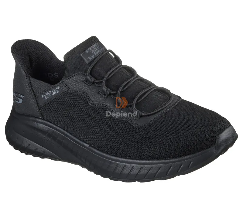 Főbb jellemzők: Skechers Hands Free Slip-ins formázott sarokpanel a könnyű illeszkedésért. A Heel Pillow biztonságosan a helyén tartja a lábadat. Csúszásgátló (SRO) minősítésű külső talp a nedves, száraz, olajos és zsíros felületeken való tapadásért. Elektromos veszély (EH) biztonságos kialakítás ASTM-F2892 szabvány szerint tesztelve. Skechers Air-Cooled Memory Foam párnázott, kényelmes talpbetét. No Tie Fit – a fűzők sosem bomlanak ki.