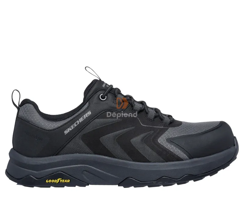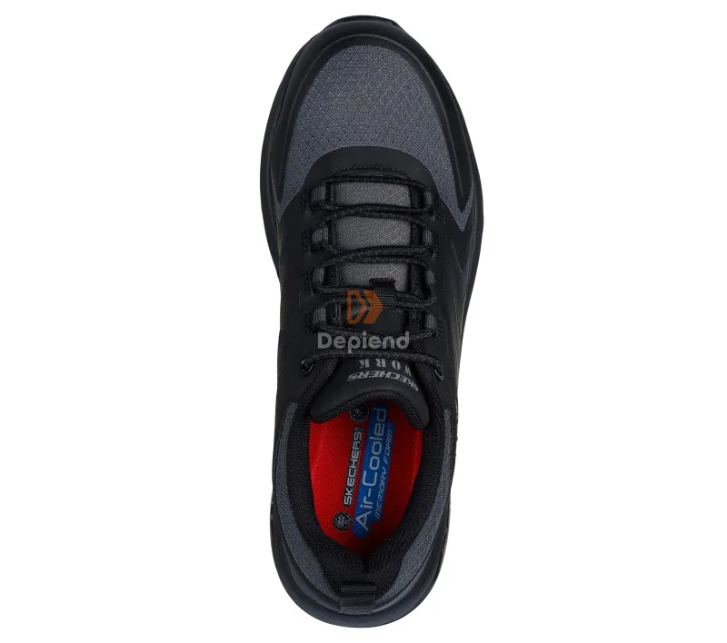 Karbon Nano nemfémes kaplival, elektromos veszély elleni védelemmel, csúszásgátló talppal, Skechers Air-Cooled Memory Foam talpbetéttel és olajálló Goodyear gumitalppal rendelkező munkavédelmi cipő.
