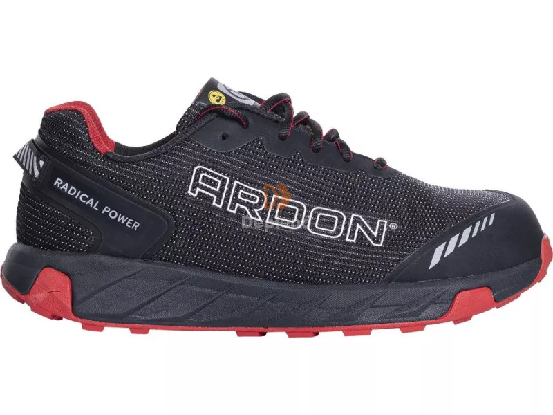 Sportos biztonsági félcipő extra széles orr-résszel a fokozott viselési kényelem érdekében. A fűzés a cipő tengelyén kivül halad el, és természetesen alkalmazkodik az emberi láb aszimmetrikus alakjához. Ez az ardon munkavédelmi cipő alkalmas kül- és beltéri használatra, ahol kényelmes és tartós termékre van szükség. Felsőrész: Nylon mesh + TPU. Bélés: MESH típusú laminált légátereszto szövet, berakható betét: Anatomic Hi-Poly foam. Cipőtalp: PHYLON/GUMI, ragasztott technológia. Orrmerevítő: üvegszálas - extra széles. Talpvédő: Kevlár.