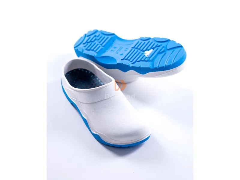 Az élelmiszeriparban, az egészségügyben vagy a szabadidőben való használatra alkalmas könnyen felhúzható lábbeli. A termék SEBS-ből, egy modern hőre lágyuló elasztomerből készül, amely úgy viselkedik, mint a gumi. Rugalmas, erős, tartós, valamint kiváló hő- és UV-állósággal rendelkezik. A belső csatornarendszer biztosítja, hogy az izzadsággal együtt a vízpára is elszálljon, és a láb száraz maradjon. A cipő antibakteriális, anatómiailag formázott talpbetéttel rendelkezik, speciális szellőzőnyílásokkal. A cipő akár 90°C-on is mosható. Anyaga:termoplastic elastomer SEBS Berakható betét:AIR COMFORT. Talp: termoplastic elastomer SEBS