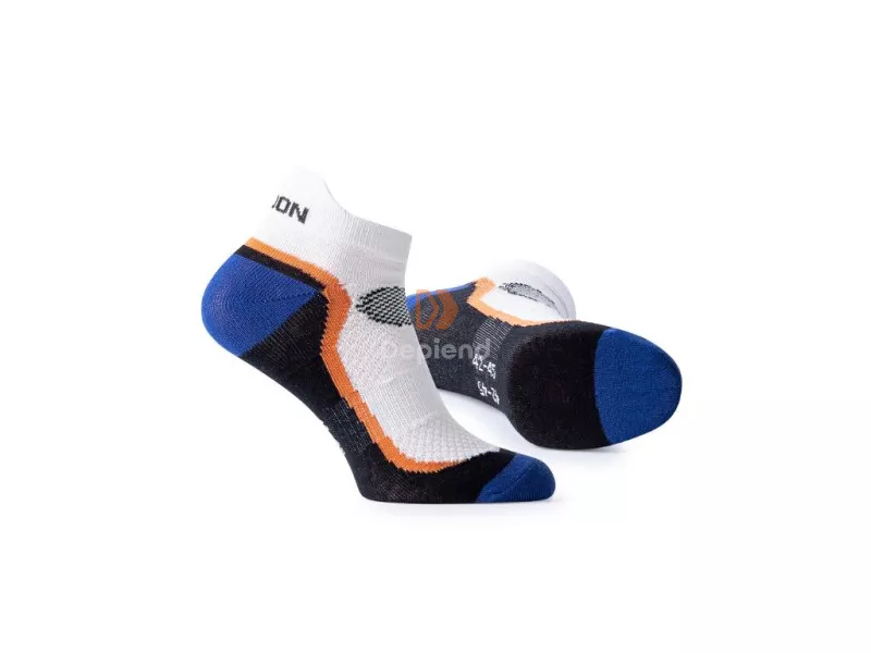 Rövid sportzokni, a funkcionális zónáknak és az elasztán arányának köszönhetően tökéletesen illeszkednek és nem csúsznak le a sarokról.