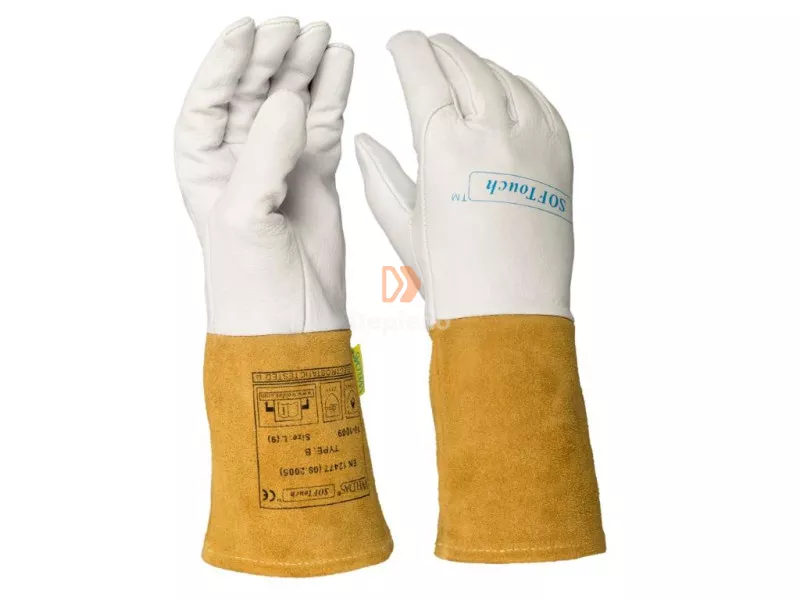 Weldas hegesztőkesztyű speciálisan feldolgozott sertésbőrből, ún. fordított sertés nubukból készül. Tenyér anyaga: sertés nubuk.