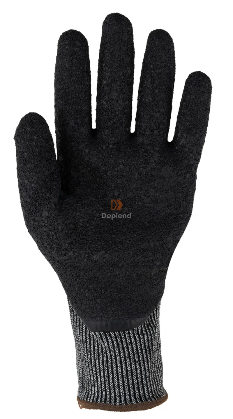 13-as kötésű varrás nélküli vágásbiztos védőkesztyű, amely az ökölcsontig csúszásbiztos krepp latex mártással, kötött mandzsettával és kontakt hő elleni védelemmel (HOT1) rendelkezik. A kesztyű ezeken felül nem tartalmaz üvegszálat és kiváló tapadást biztosít nedves környezetben.