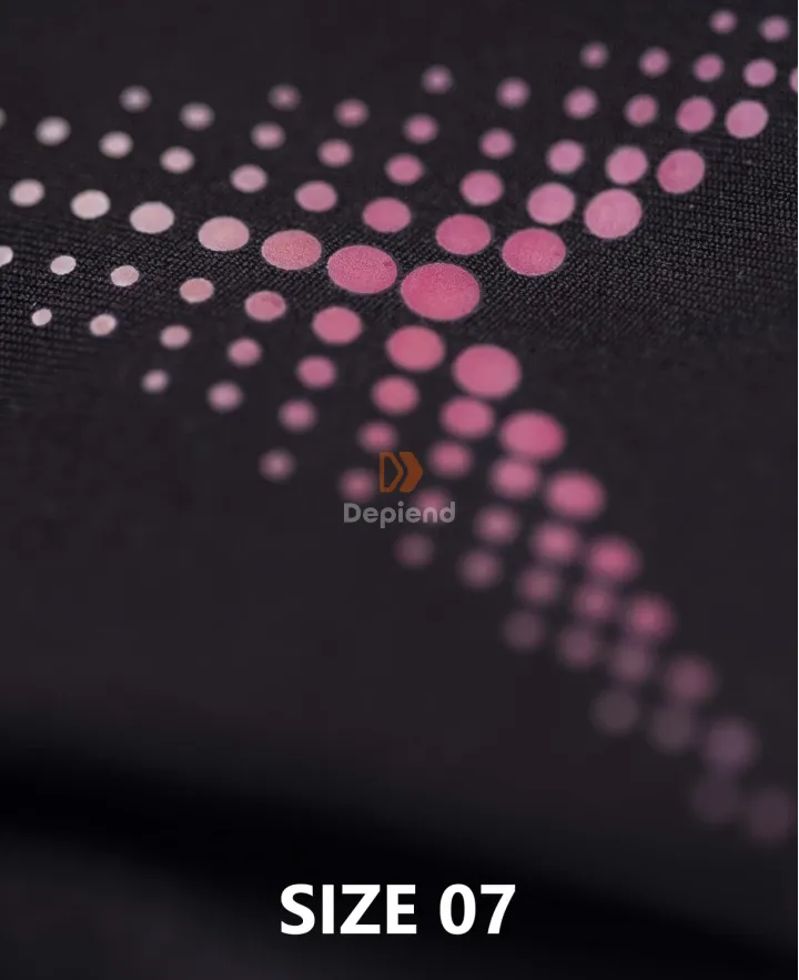 A tenyérrészen csúszásgátló bevonattal rendelkező 1,1 mm vastag bliszteres védőkesztyű. Az S-es (07-es) méret a hátulján rózsaszín pöttyökkel rendelkezik.