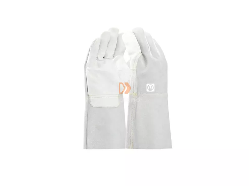 Marhabőr tenyérrel, hasított marhabőr kézháttal és mandzsettával (15 cm hosszú) és kevlár varratokkal rendelkező kesztyű, amely száraz környezetben való munkavégzésre ajánlott.