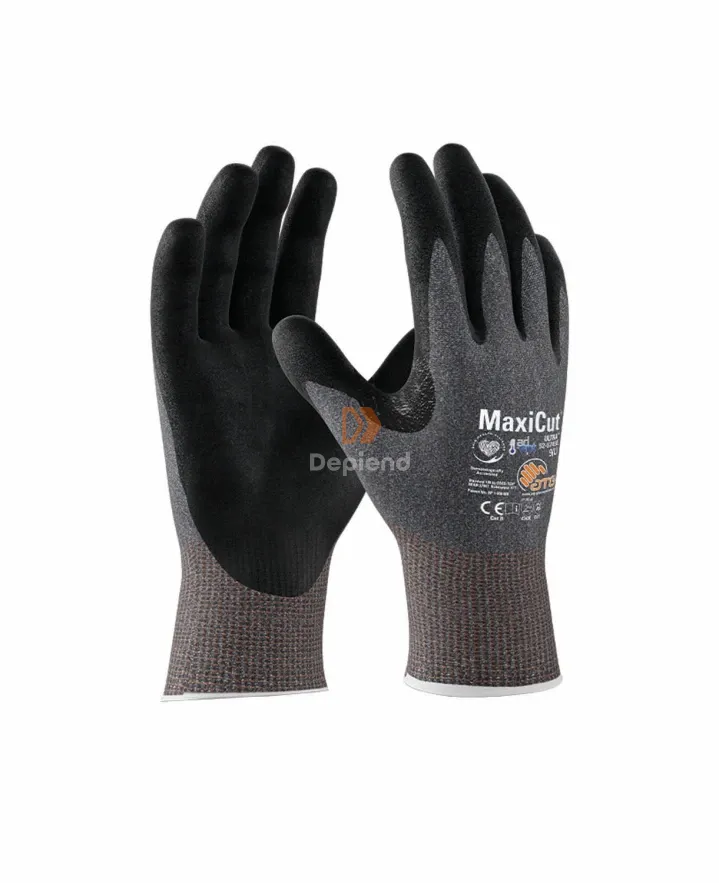 Félig nitrilhabba mártott védőkesztyű, amely az EN 388 szabvány szerint E szintű vágásállósággal, 360°-os légáteresztő képességgel, a hüvelykujj és a mutatóujj között megerősítéssel, kötött mandzsettával és AD-APT technológiával (szárazon és hűvösen tartja a kezet) rendelkezik. A kesztyű tenyérvastagsága 1,2 mm, érintőképernyőkkel kompatibilis, szilikonmentes és száraz környezetben való munkavégzésre ajánlott.