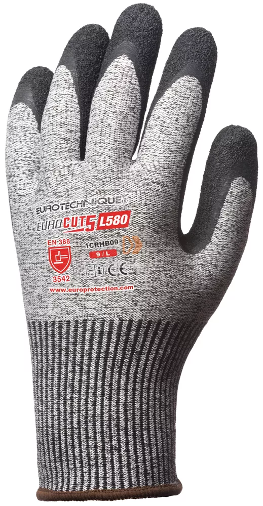 EUROCUT 5 L580 FEKETE KREPP LATEX KESZTYŰ: • 13-as kötésű, legmagasabb színtű szakítás- és kopásállóságú, szúrásbiztos illetve maximális 5-ös szinten vágásbiztos HPPE (high performance PE) + üvegszál alapanyagú védőkesztyű • tenyerén fekete krepp latex mártott védőkesztyű megnövelt élettartammal • könnyű, extra kényelmes, teljesen kézre simuló formai kialakítás, extra csúszásbiztossággal száraz és nedves környezetben • gumírozott, rugalmas mandzsetta • széles méretszortiment • MÉRET: 7-es • CSOMAGOLÁS: 50/5 – páranként külön csomagolva • EU szabvány: EN420:2003 + A1:2009, EN388: 2003 3542