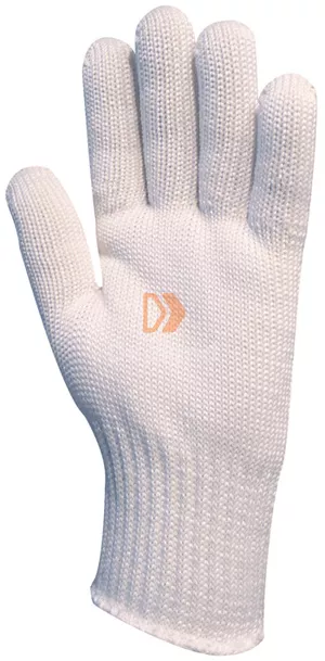 10-es finomságú, kötött poliamid, komfortos, puha pamut belsővel, vastag, kopásálló rugalmasan kézre simuló védőkesztyű, nagy szakítószilárdságú védőkesztyű, mely nem szöszöl, gumírozott mandzsetta
