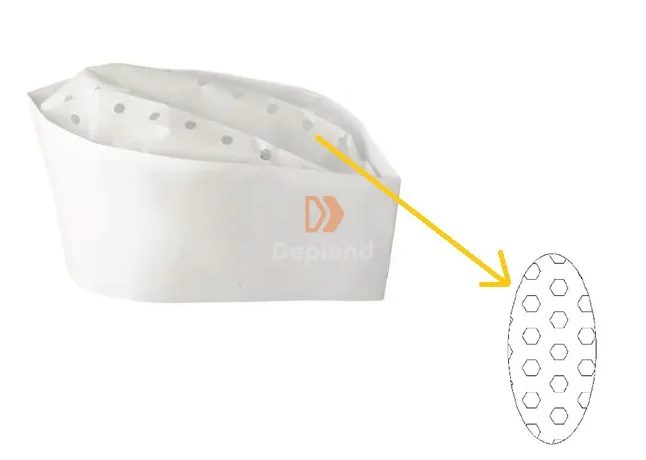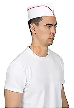 Légáteresztő, tartós és formatartó papírból készült, hátul állítható pánttal, amely lehetővé teszi a pontos illeszkedést (56–64 cm). Elsősorban az élelmiszeriparban alkalmazzák. Alapanyag: papír. Hajtott méret: 27,5 × 8,5 cm. Súly: 70 gsm. Kivitel: piros csíkkal ellátva.