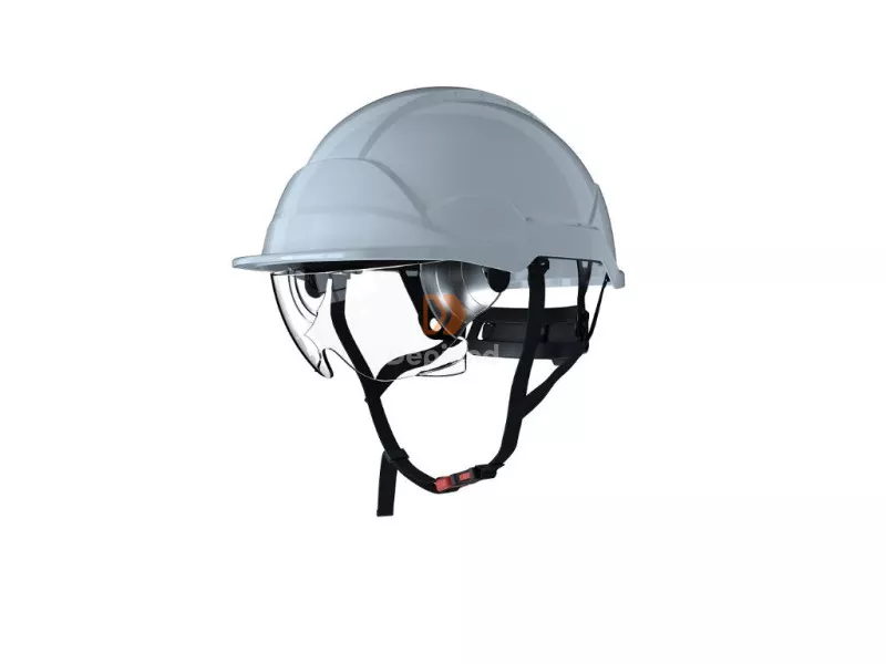 Ipari védősisak, amely kiváló védelmet, kényelmet nyújt és a tevékenységek széles körére tervezték. A sisak ABS anyagból készült, amely nagyon ellenáll az ütéseknek, véd a vegyi folyadékok és az olvadt fém fröccsenése ellen. Nagy ellenállás az oldalsó ütközésekkel szemben a 6 pontos rugalmas és nagyon kényelmes belső textil kosár korlátozza a hőátadást. Folyamatos méretállítás az állítható kerékkel 52-63 cm tartományban. Cserélhető, mosható pamut izzadságszalag megakadályozza az izzadást valamint rendkívül hőálló -30 °C és +50 °C között. A sisakhoz 4 pontos állszíj tartozik beépített cserélhető felhajtható szemüveg a szem védelmére. A szemüveg nem gyúlékony és ütésálló, kiváló felületkezeléssel párásodás és kopás ellen. A sisak elektromosan szigetelt, védi a felhasználót az áramütéstől 440 V AC-ig. Alkalmas alacsony feszültségű elektromos berendezésekben és azok közelében történő használatra, amelyek nem haladják meg az 1000 V AC és 1500 V DC feszültséget (0 energiaosztály) élettartama akár 10 év.