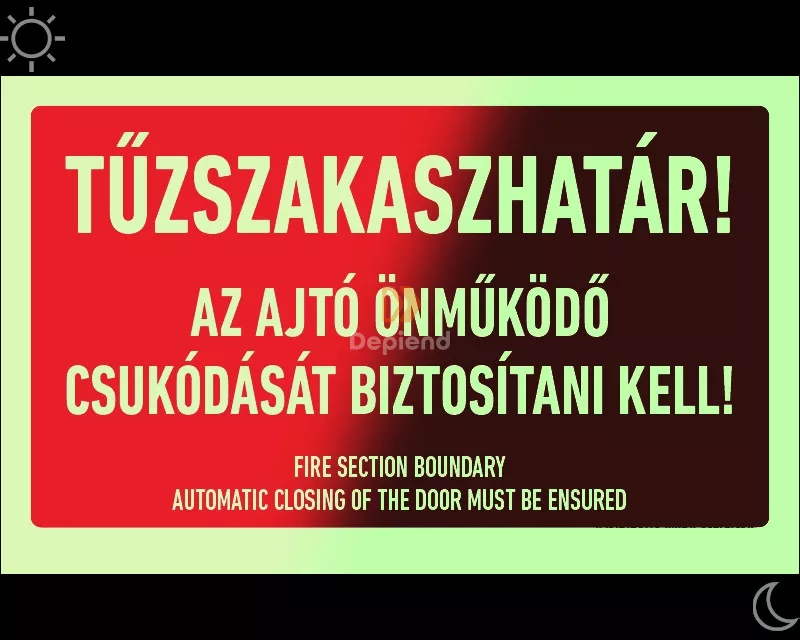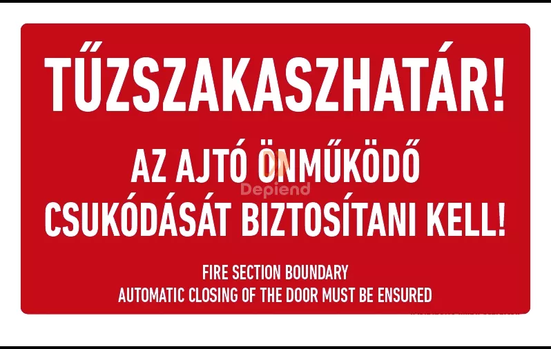 'Tűzszakasz-határ! Az ajtó önműködő csukódását biztosítani kell!' tábla vagy matrica. Bizonyos esetekben létezik tábla és matrica kivitel is. A weboldalon látható kép illusztráció, a raktárkészlet lévő termékek kinézete esetenként eltérő lehet. Az ár az alapanyag és a méret függvényében módosulhat. A termék kizárólag a Depiend St.Florian üzletünkben érhető el, bővebb információ kirendeltségünkön kérhető!