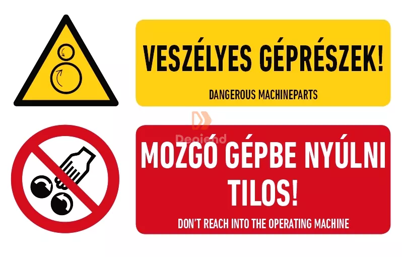 'Veszélyes géprészek! Mozgó gépbe nyúlni tilos!' tábla vagy matrica. Bizonyos esetekben létezik tábla és matrica kivitel is. A weboldalon látható kép illusztráció, a raktárkészlet lévő termékek kinézete esetenként eltérő lehet. Az ár az alapanyag és a méret függvényében módosulhat. A termék kizárólag a Depiend St.Florian üzletünkben érhető el, bővebb információ kirendeltségünkön kérhető!