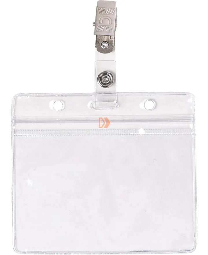 Azonosítókártya tartó, amely csipesszel ruházatra rögzíthető.