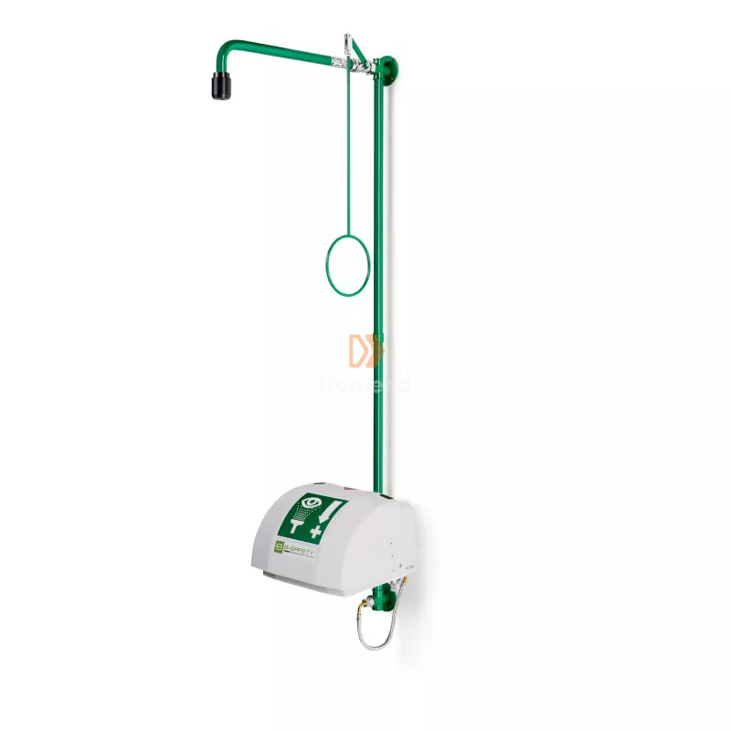A biztonsági zuhanykombinációk – a vészhelyzeti testzuhanyok és a szemzuhanyok kombinációi – több helyet takarítanak meg, mint az egyedi telepítés. Ez lehetővé teszi egy központi hozzáférési pont létrehozását elsősegélynyújtáshoz. A lehetséges kombinációnak köszönhetően a kézi szemzuhannyal egy sérült a kisebb sérülések részleges ellátását a vészhelyzeti testzuhany használata nélkül is elvégezheti. Nagy teljesítményű zuhanyfej a visszafogott, egyenletes és lágy vízsugárért a vegyszerek szemből történő kiöblítésére optimalizálva. A robusztus kialakítás alkalmas a mindennapi nehézipari használatra is. Tökéletes beállítást biztosít a vészhelyzeti testzuhany a helyszíni veszélyes helyzetekhez igazodva a percenként 50 és 110 liter közötti választható térfogatáramnak köszönhetően. Önleeresztő, nagymértékben vízkőmentes és karbantartásmentes, valamint nagyon tartós és korrózióálló. Az állítható vészhelyzeti testzuhanyok a helyszíni körülményekhez igazodnak. Vegyszerálló poliészter porbevonat az agresszív környezetben való használatra.
