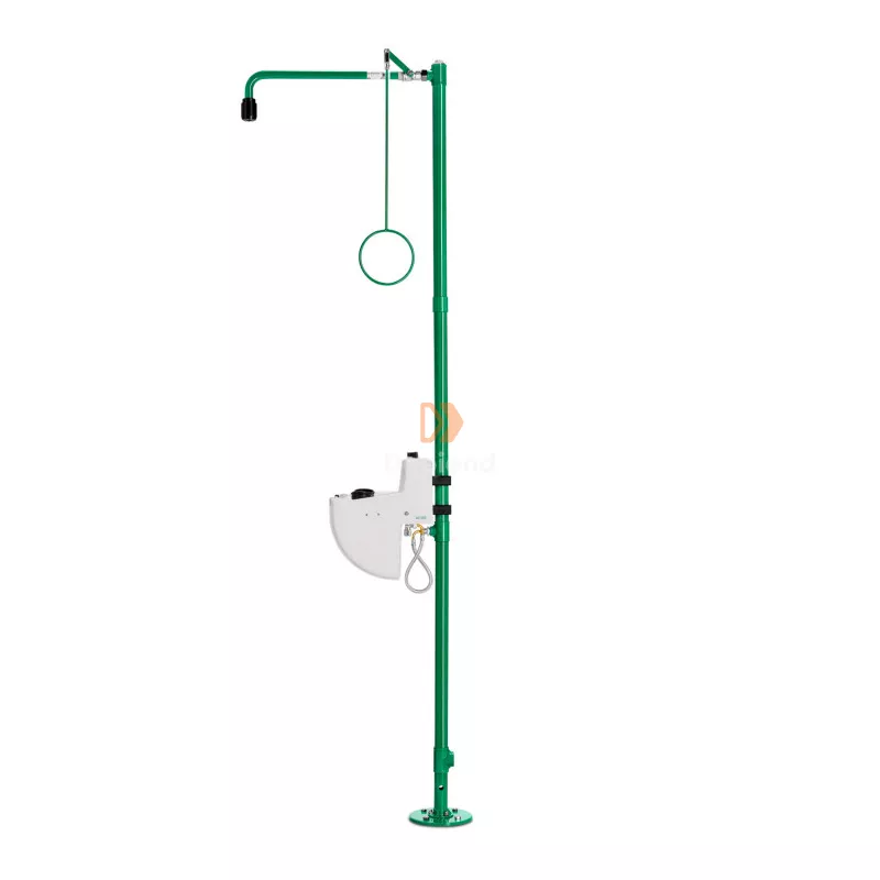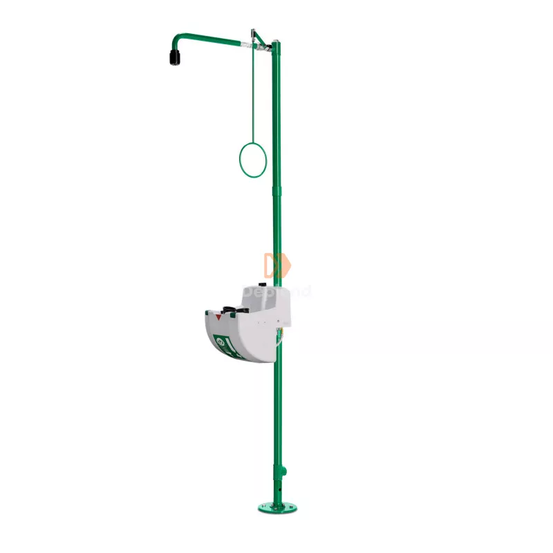 A szabadon álló ipari biztonsági zuhanyok minden olyan helyen használhatók, ahol a zuhany falra szerelése nem lehetséges, vagy ahol központi hozzáférési pontot kell létrehozni az elsősegélynyújtáshoz. Nagy ipari csarnokokban és termelési létesítményekben is érdemes használni őket. Nagy előny, hogy a zuhanyzó minden oldalról jól látható. A szabadon álló vészhelyzeti zuhanyok opcionálisan a helyi körülményekhez igazíthatók, a kiegészítők széles választékával. Nagy teljesítményű zuhanyfej a visszafogott, egyenletes és lágy vízsugárért a vegyszerek szemből történő kiöblítésére optimalizálva. A robusztus kialakítás alkalmas a mindennapi nehézipari használatra is. Tökéletes beállítást biztosít a vészhelyzeti testzuhany a helyszíni veszélyes helyzetekhez igazodva a percenként 50 és 110 liter közötti választható térfogatáramnak köszönhetően. Önleeresztő, nagymértékben vízkőmentes és karbantartásmentes, valamint nagyon tartós és korrózióálló Az állítható vészhelyzeti testzuhanyok a helyszíni körülményekhez igazodnak. Vegyszerálló poliészter porbevonat az agresszív környezetben való használatra.