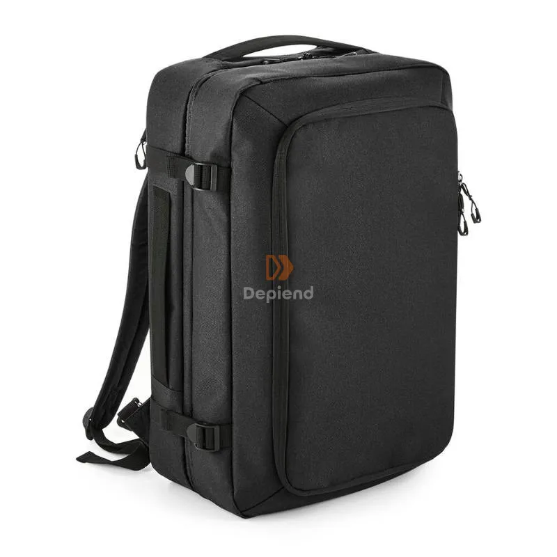 1-Anyaga: 600D poliészter -Laptprekesz 15.6- os méretig -Mérete: 35 x 51 x 28 cm -Kapacitása: 40 liter A fedélzeti hátizsák, amely repülőgép kabinba is vihető - alkalmas a legtöbb légitársaság szabályainak megfelelően. A kényelmes két rekeszes kialakítás segít a hatékony csomagolásban. A párnázott laptop rekesz akár 15,6"-os méretig kompatibilis, biztosítva az elektronikai eszközök biztonságos szállítását. A zárolható főrekesz cipzár, a gyors hozzáférésű felső cipzáras zseb, és a nagy méretű első cipzáras rekesz belső hálós elválasztóval mind-mind a tárolás és szervezés kényelmét szolgálják. A cipzáras belső zseb további tárolási lehetőséget kínál. A párnázott felső és oldalsó fogantyúk, valamint a kettős kompressziós szíjak a kényelmes és biztonságos szállítást teszik lehetővé. A TearAway címke egyszerű átbrandelést biztosít.