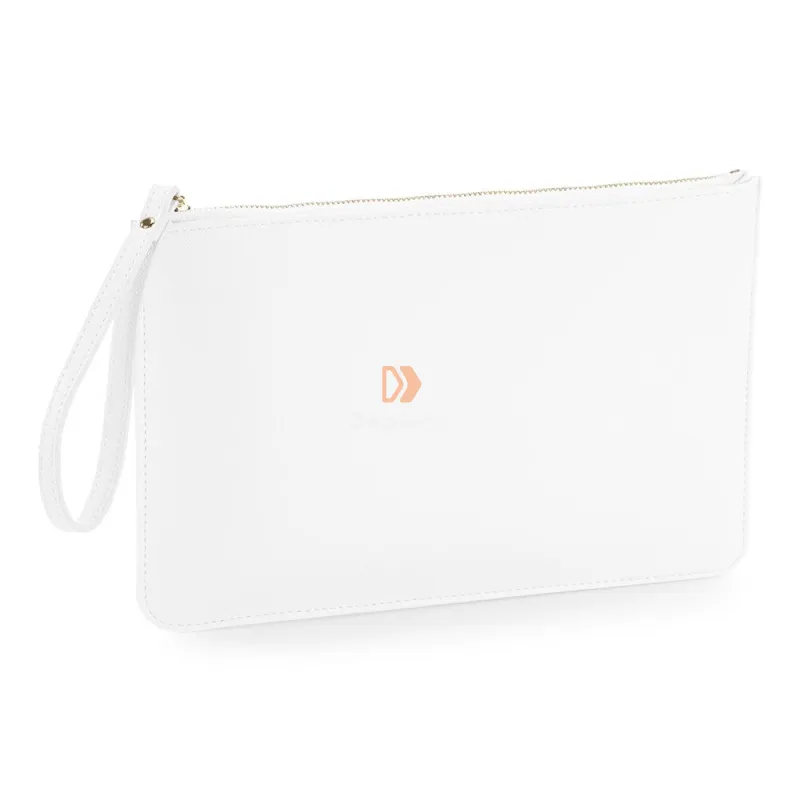 -Anyaga: 100% bőrhatású PU -Mérete: 26 x 17 cm Maximális nyomtatható terület: 23*14 cm Ez a kiegészítő kistáska 100%-ban bőrhatású PU anyagból készült, többfunkciós használattal. A cipzáras főrekesz biztonságos tárolást nyújt, a puha tapintású bélés és a belső párnázás extra védelmet biztosít a tárolt tárgyaknak. A magas fényű arany fém cipzár és a csuklópánt növelik a táskának a praktikumát és stílusát. A TearAway címke lehetővé teszi az egyszerű átbrandelést, így kiváló választás lehet vállalkozások számára is, akik egyedi márkázást szeretnének.