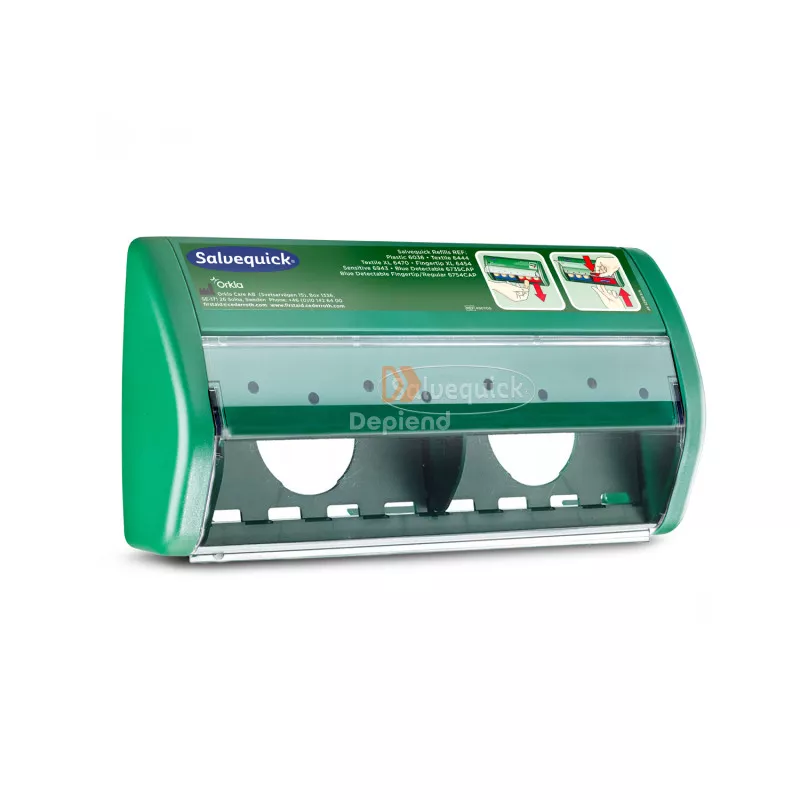 A Salvequick sebtapasz adagoló magas minőséget biztosít és egyszerűen használható. Egy kézzel használható – kihúzáskor a sebtapasz egyik ragasztófelülete automatikusan szabaddá válik, így azonnal könnyen felhelyezhető. Az átlátszó fedél védi a sebtapaszokat a portól és nedvességtől. Az adagoló a speciális kulccsal gyorsan és egyszerűen újratölthető.