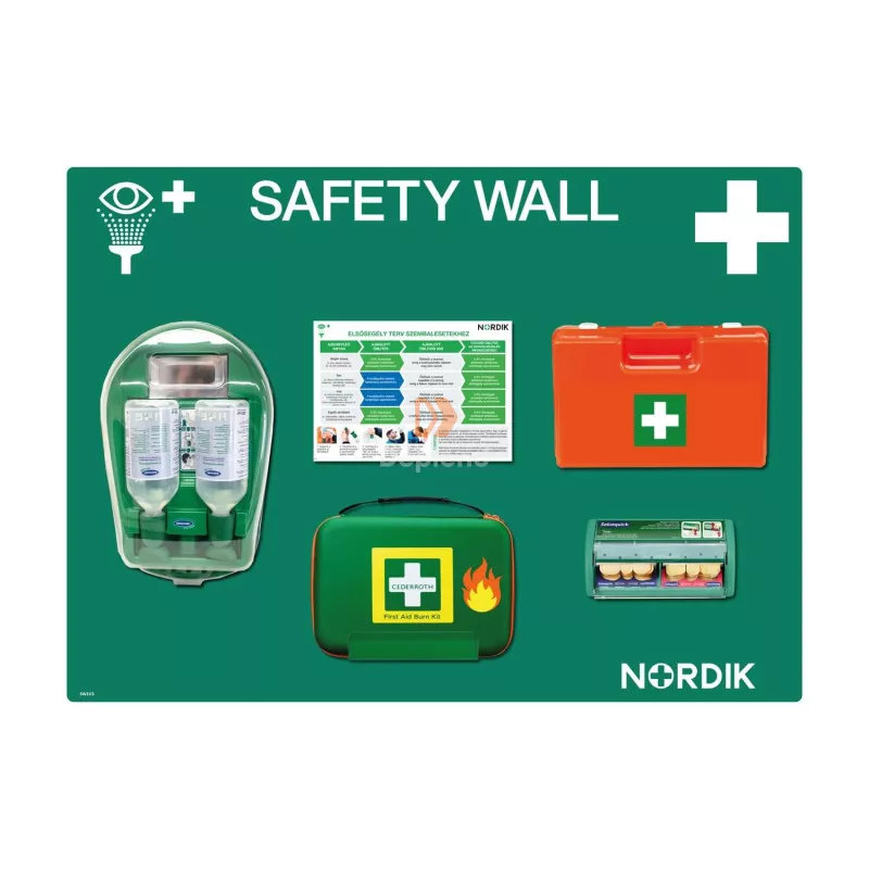 Esztétikus, falra szerelhető komplex elsősegély állomás, mely ötvözi a legjobb elsősegély megoldásokat a modern és praktikus kialakítással. Ideális választás bármely munkahely számára, legyen szó irodáról, üzemről vagy raktárról, ez a rendszer minden szükséges eszközt biztosít egy esetleges baleset gyors és hatékony ellátásához. A falra szerelhető kialakítás praktikus és helytakarékos, a rendszer pedig könnyen átlátható és gyorsan hozzáférhető vészhelyzet esetén. Ez a verzió egy Cederroth Salvequick sebtapasz adagolót, egy égési sérülések ellátására szolgáló Cederroth elsősegély felszerelést, a szín/Színek pontban választható Actiomedic Medidrop szemkimosó állomást és választható elsősegély ládát tartalmaz. A csomaghoz tartozik még egy tábla, amely mérete 110 x 80 cm. A weboldalon látható kép illusztráció, a raktárkészlet lévő termékek kinézete esetenként eltérő lehet.