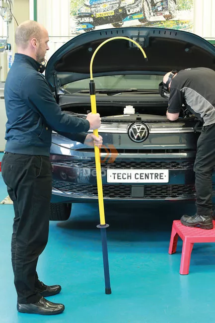 Alkalmas az áramütés által sokkolt áldozat baleset közbeni megmentésére, az áramkörből való elrántására. Teljesen szigetelt biztonsági, szigetelt életmentő kampó, amely arra szolgál, hogy biztonságosan eltávolítsák a nagyfeszültségű helyzetből származó áramütéses sérülteket anélkül, hogy a kampó felhasználóját (az életmentőt) magas feszültségnek tennék ki. Ez z eszköz a Laser Tools gyártó cég "EV - Electric Vehicles" biztonsági termékcsaládjának a része. Ez a termék minden Hibrid / EV szerelő műhelyben kötelező és nélkülözhetetlen elem. Az életmentő kampó fali tartókonzol készlettel van ellátva, amely kényelmes, biztonságos és könnyen hozzáférhető tárolást tesz lehetővé. FONTOS: Használat alatt mindkét kézzel csak és kizárólag a fekete markolat részt szabad megfogni, a véletlen felcsúszás ellen a markolat felett egy körkörös védőperem található! Használat közben soha ne fogjuk meg a sárga fém részt! Jellemzők: Szigetelés: 45 kV (45.000 V), Hossza: 1,79 méter,,Átmérője: 32 mm, súlya: 1,00 kg, fali tárolókonzol készlettel együtt szállítva, mindkét végén nedvességálló tömítésekkel és a markolatnál kézvédővel van ellátva. FIGYELEM: Csak száraz állapotban szabad használni!