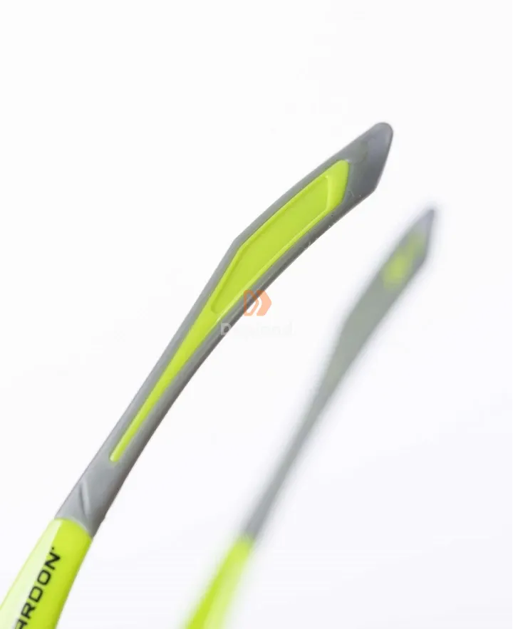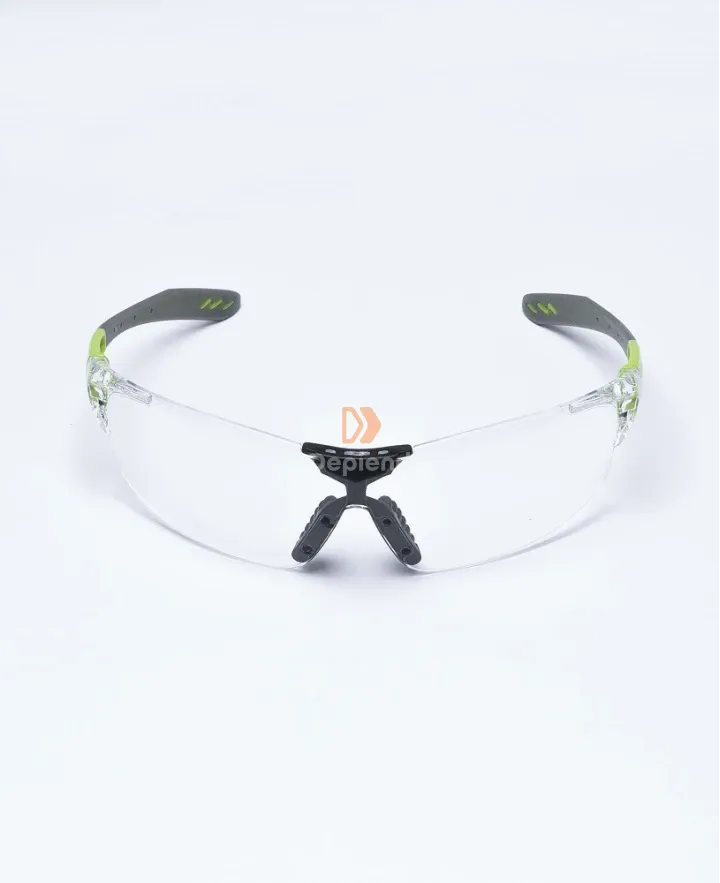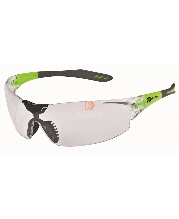 Modern kialakítású védőszemüveg, amely puha szárvégekkel, puha szellőző orrnyereggel, polikarbonát lencsével (2 - 1,2 1 FT O jelöléssel) és szárakkal, páramentesítő és karcálló kezeléssel és UV-szűrővel rendelkezik.