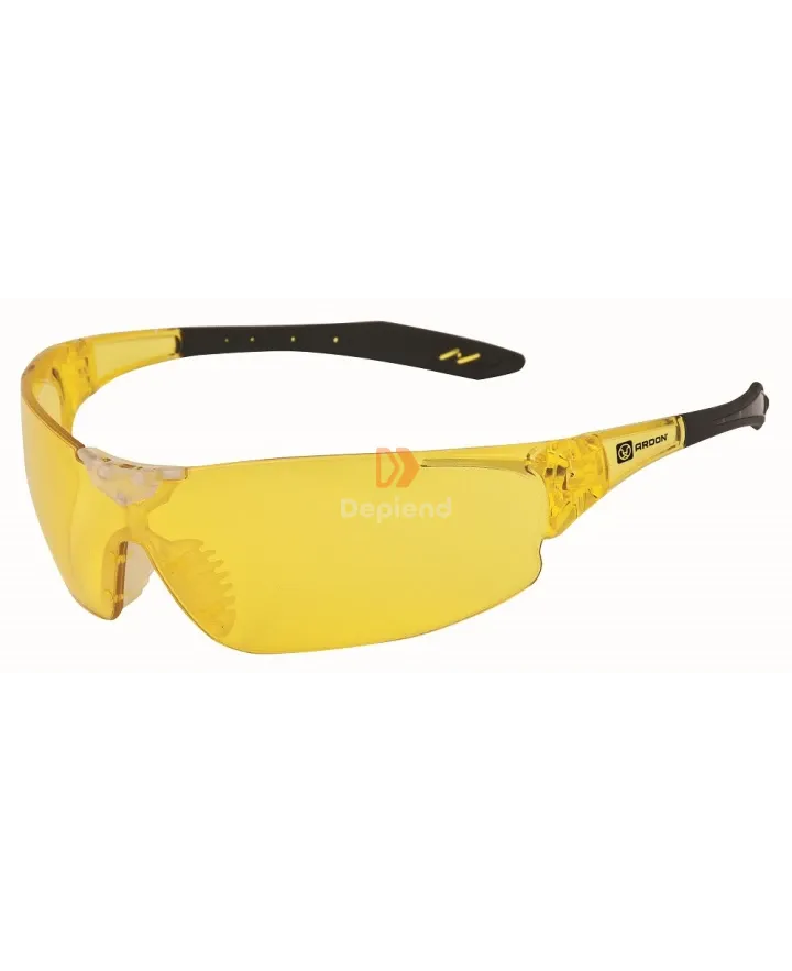 Modern kialakítású védőszemüveg, amely puha szárvégekkel, puha szellőző orrnyereggel, polikarbonát lencsével (2 - 1,2 1 FT O jelöléssel) és szárakkal, páramentesítő és karcálló kezeléssel és UV-szűrővel rendelkezik.